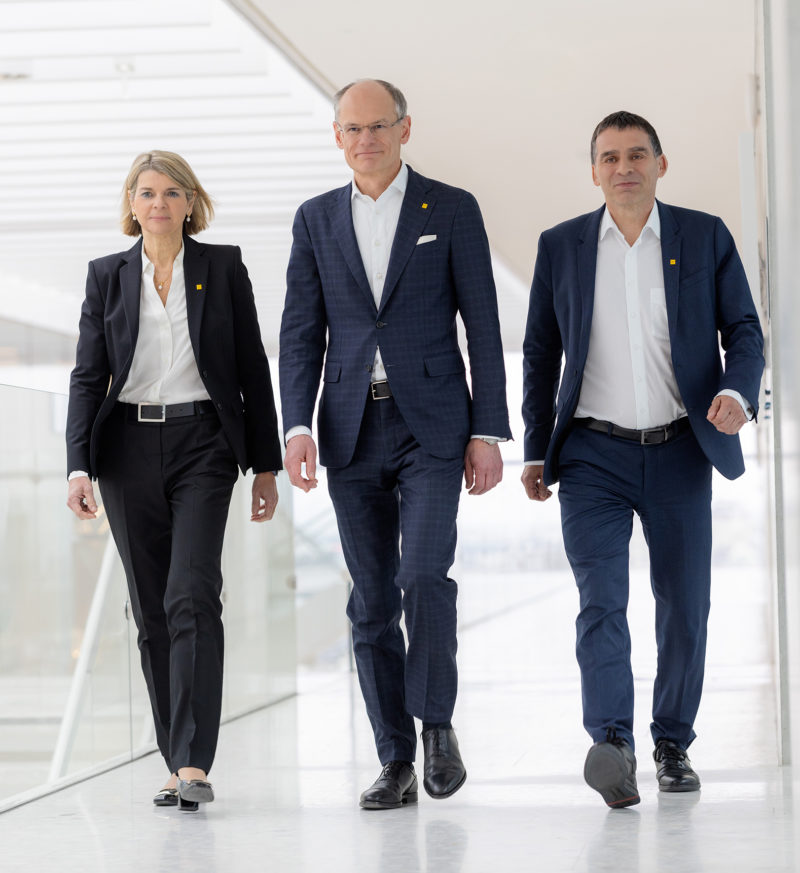 Walter Oblin_ Der Vorstand steht in seiner jetzigen Zusammensetzung gleichermaßen für Bewegung und Beständigkeit. Nach einer sehr langen Zeit von 15 Jahren habe ich im Oktober 2024 Georg Pölzl als Generaldirektor und Vorstandsvorsitzenden abgelöst. Meine bisherige Position als Finanzvorstand hat zum Jahresbeginn mit Barbara Potisk-Eibensteiner eine der erfahrensten Finanzvorständ*innen Österreichs übernommen. Mein Vorstandskollege Peter Umundum ist seit Oktober Generaldirektor- Stellvertreter und bleibt weiterhin Vorstand für Paket & Logistik.